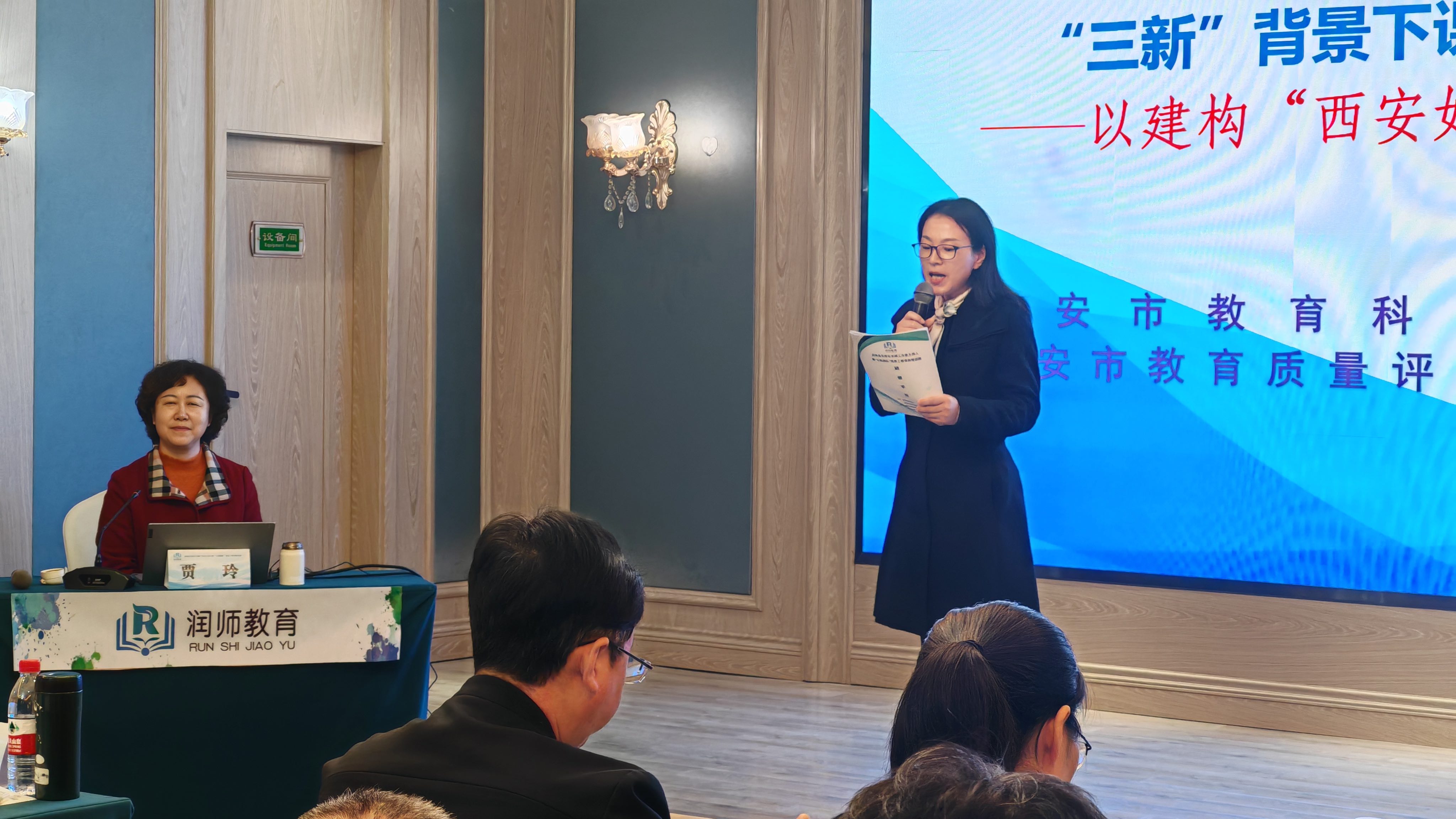 开班仪式后,首场培训讲座如期举行。西安市教育科学研究院副院长贾玲以《“三新”背景下课堂教学改革新路径——以构建“西安好课堂”为例》为题,结合“西安好课堂”的实践经验,深入解析了课堂教学改革的最新理念与典型模式。讲座采用“专家授课+互动答疑”形式,既有理论高度又具实践指导意义,让参训学员对核心素养导向下的课堂创新有了更清晰的认知。