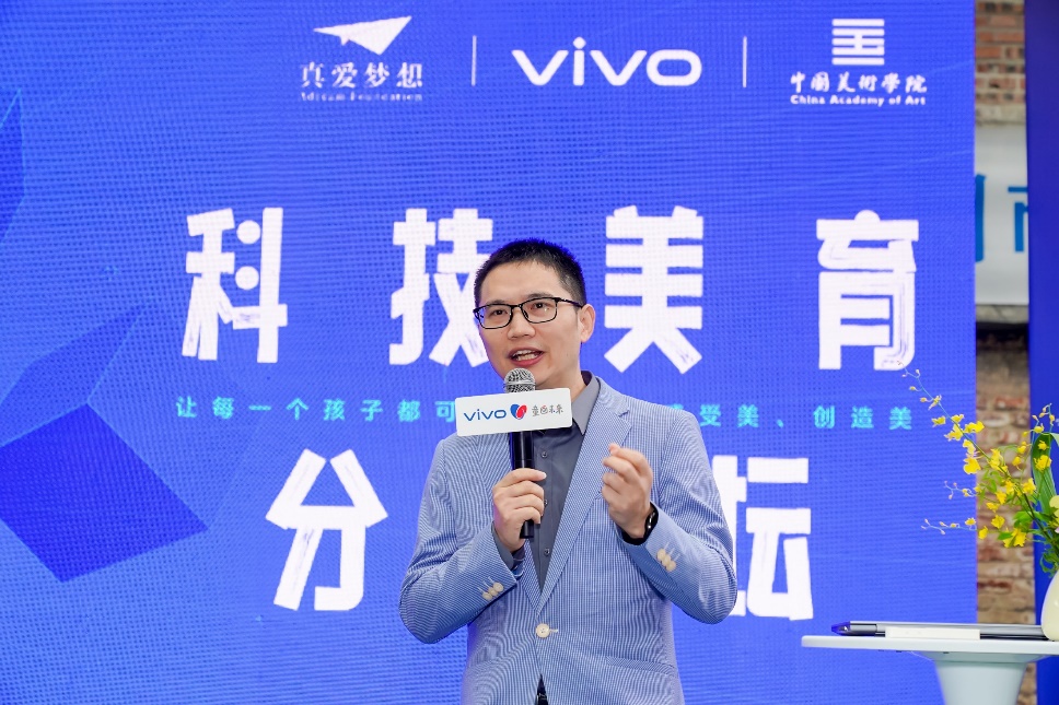 vivo企业社会责任总监、乡村儿童美育网络执委张天潘在开幕致辞中,分享了他在美育实践中的感动。他表示,美育最真实的模样,是乡村孩子举起画作时发亮的眼睛,是他们通过影像将家乡变成作品时的惊叹。“在vivo,我们选择用我们最擅长的方式——科技,作为传递美好的小船。”他强调,智能设备不只是工具,更可以成为一支全新的“画笔”。在“童画未来”项目中,科技化身为连接心灵的彩虹桥,守护并放大每一个孩子的创造力。他形容美好的传递如同涟漪,“一个孩子的笑容感染另一个,一位老师的感动激励另一位”,并呼吁所有参与者共同成为“涟漪的中心”,汇聚能量,传递美好。