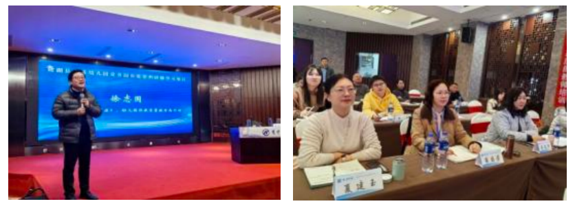 随后,常州市新北区幼教教研员徐志国主任带来《践行学前教育法,幼儿园保教质量提升再行动》的专题讲座。徐主任围绕“树立儿童立场的关键对话、回归保教现场的教研思辨、创设儿童经验发展的学习环境、指向问题解决的园本教研、高质量游戏的实践路径、课改视角下的关键问题、重塑观察的核心意义、幼儿园日常教育质量自我观测的核心要点 ”八个方面,结合《学前教育法》要求与保教工作实际进行理论分析和经验指导,为参训园长破解工作难题、提升保教质量拓宽了新的工作思路与实践方法。