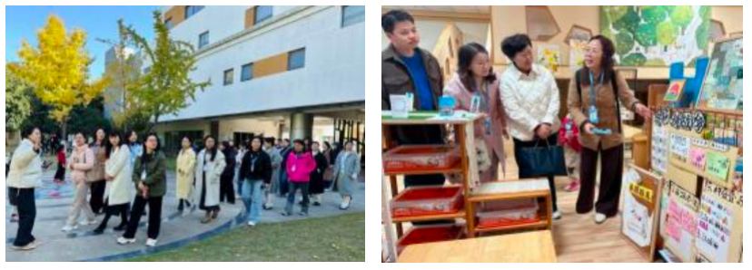 11 月 19 日上午,学员们走进常州市新北区银河幼儿园,实地参观了室内外环境,观摩了野趣户外混龄活动。充满童趣的班级区域、自主探索的户外游戏空间,处处彰显了“儿童本位 ”的理念。