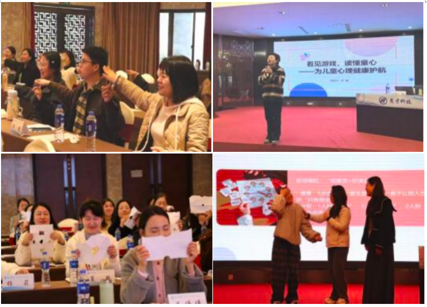 11 月 21 日,常州市中吴实验学校副校长孙静为我们带来了本次研修的最后一场讲座。她以模拟实操、游戏互动、案例分析等形式,进行了关注儿童心理健康《看见游戏 读懂童心》的专题分享。孙校长围绕“游戏是儿童的学习语言 ”这一核心理念展开,从如何用三步观察法解读游戏中的儿童行为、情绪及需求,到用目标、规则、环境三个维度设计儿童情绪游戏,让学员们理解游戏在调节儿童情绪中的作用,呼吁大家用眼睛看见游戏、读懂孩子,走进孩子心里,陪伴孩子快乐健康成长。