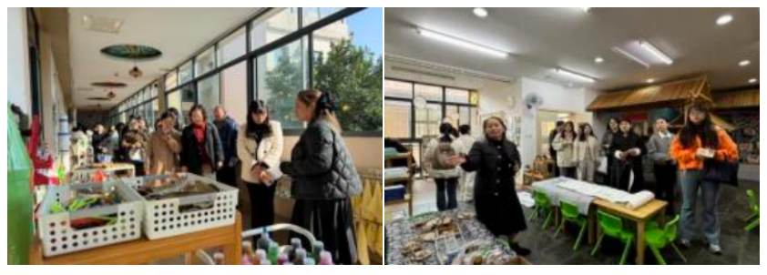 下午,学员们步入常州市刘海粟美术幼儿园,浓郁的艺术气息与“儿童本位 ”的教育温度扑面而来,色彩斑斓的探究空间为幼儿提供自主创作的自由天地。“艺趣儿童工作室 ”“水墨画室 ”“木工房 ”等活动场内,幼儿的艺术作品与主题探究痕迹相映成趣,枯枝、落叶、石头等自然材料被赋予创意灵魂,化作灵动的艺术装置。园所将“美育融入日常 ”的理念转化为可触摸、可体验的场景,让学员们直观感受到艺术教育对幼儿审美感知与创造力的滋养,展现了该园“立美于术,涂抹纯真底色;润爱于心,挥墨七彩童年 ”的办园理念。